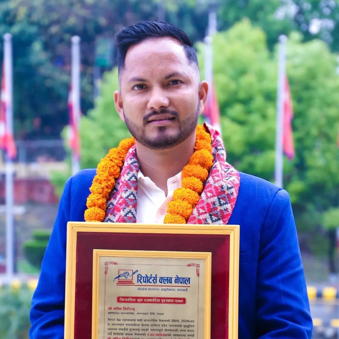 Nabin Giri, president of Online TV Nepal, has been honoured with the Active Youth Journalism Award 2079 BS. Reporters Club Nepal presented the awar...